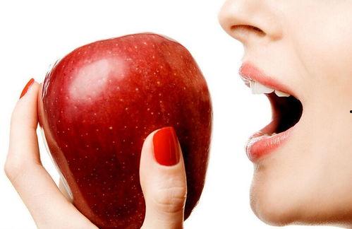 “这个小伙子吃苹果的样子好可爱啊!”