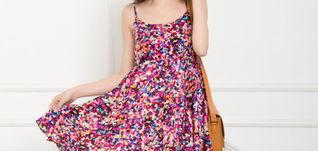 吃瓜碎花连衣裙的色彩搭配非常巧妙,既有清新自然的绿色、蓝色,也有热情似火的红色、橙色。这些色彩不仅能够衬托出你的肤色,还能让你在人群中脱颖而出。